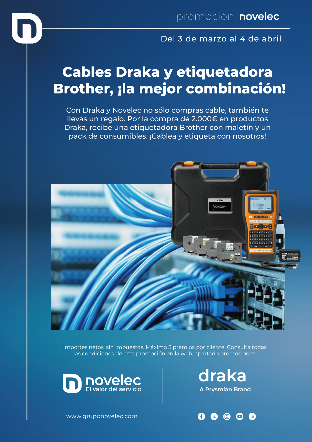 Hasta el 4 de abril,, cables Draka y etiquetadora Brother, la mejor combinación.